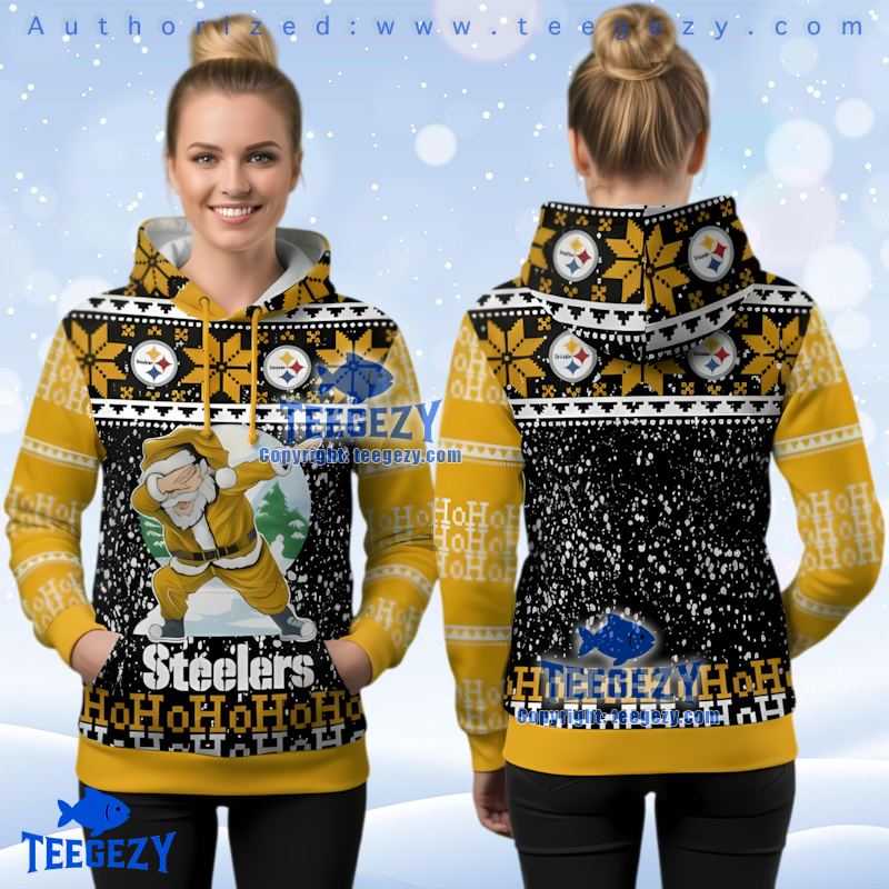 Product information "Pittsburgh Steelers Funny Dabbing Santa Ugly 3D Hoodie Yellow Black"