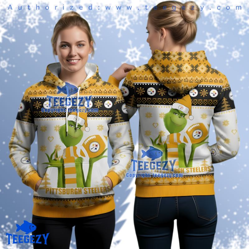 Unleash your holiday spirit with the lively Pittsburgh Steelers Grinch Cartoon Ugly Christmas 3D Hoodie. This striking design captures the essence of fun and cheer, making it the ultimate choice for fans who want to combine their love for football and festive vibes. The Pittsburgh Steelers Grinch cartoon hoodie is a unique blend of team pride and holiday whimsy, perfect for any celebration.