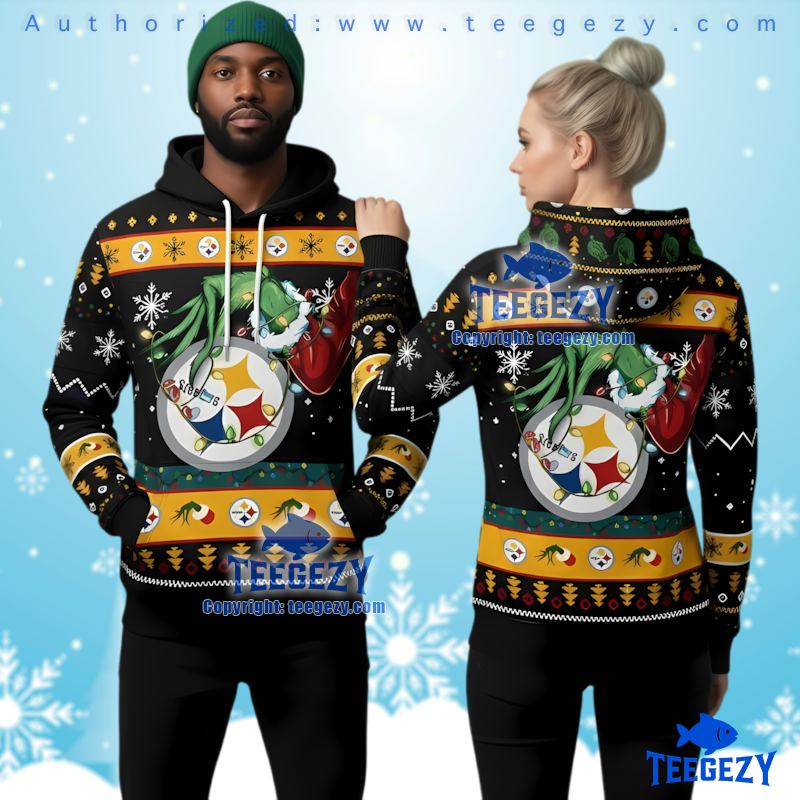 Show your team spirit this holiday season with the Pittsburgh Steelers Grinch Light Christmas 3D Ugly Hoodie Men Women. This unique design captures the whimsical charm of the Grinch, blending holiday fun with your favorite football team. Celebrate your passion and stay cozy while spreading festive cheer with this one-of-a-kind apparel.