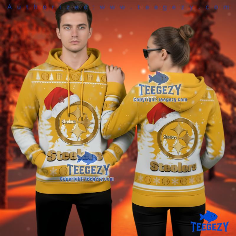 Don’t miss out on this must-have fan collectible that is perfect for gifting or treating yourself. The Pittsburgh Steelers Logo Santa Hat Ugly Christmas 3D Hoodie is not just apparel; it’s a statement piece for true fans. Celebrate the season with pride and grab yours today!
