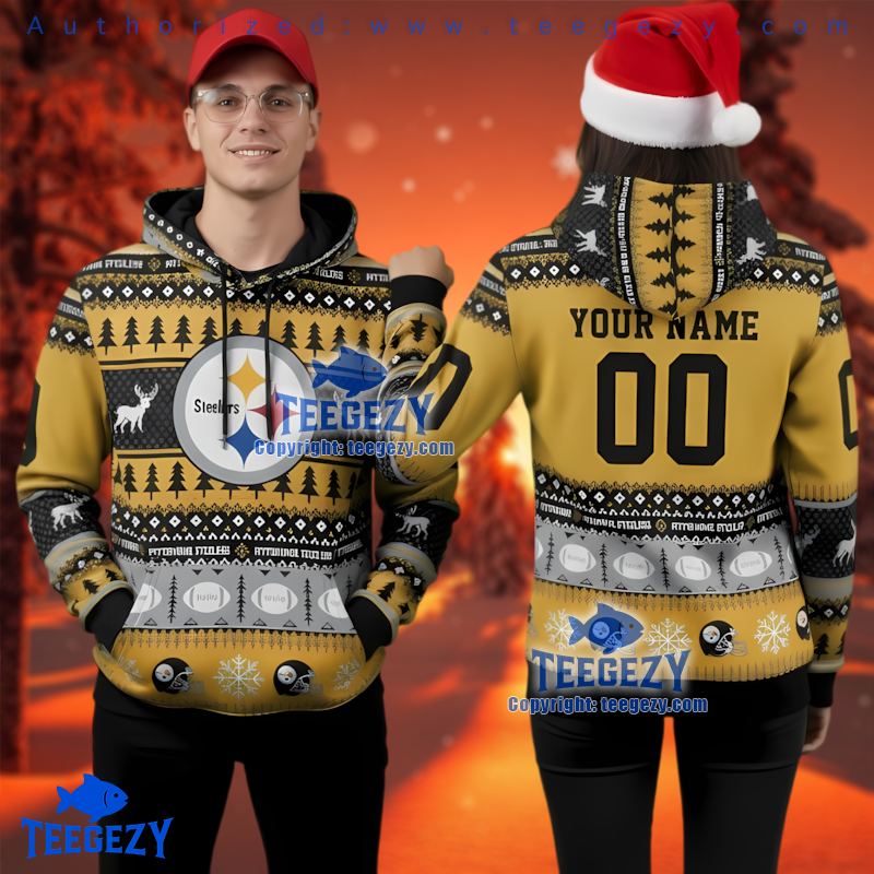 Don’t miss the chance to gift this appealing piece to the Steelers fan in your life. Whether for a birthday or the holidays, this hoodie is an ideal fan collectible. Elevate your wardrobe this festive season with the Pittsburgh Steelers Personalized Ugly Christmas 3D Hoodie Custom Name Number—an ultimate expression of team spirit!