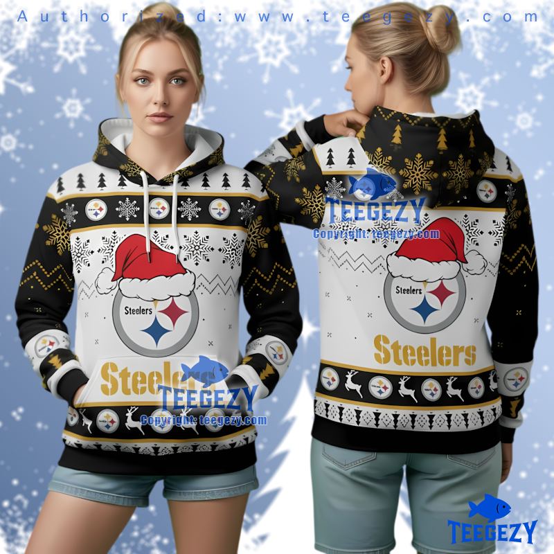 Comfort is key, and the Pittsburgh Steelers Santa Hat Team Logo Ugly Christmas 3D Hoodie does not disappoint. Crafted by Teegezy, this hoodie promises a cozy fit whether you’re lounging at home or heading to a Christmas party. Expect compliments as you wear this versatile Steelers holiday apparel anywhere this season.