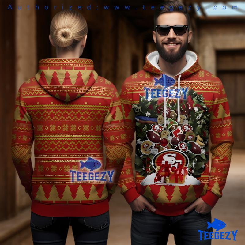 Make this holiday season memorable with the San Francisco 49ers Festive Wreath And Gifts Ugly Christmas 3D Hoodie. It’s the ultimate must-have for fans and an ideal gift choice for loved ones who share the same passion. Don’t miss out on adding this unique piece to your collection—order now and celebrate your team in style!
