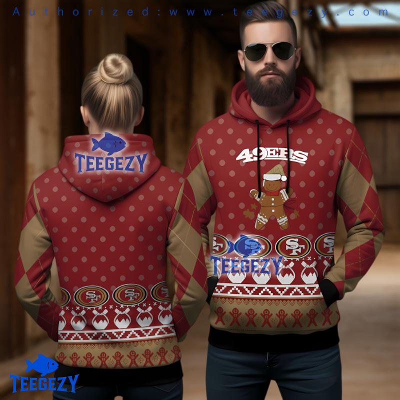 Get ready to embrace the holiday spirit with the San Francisco 49ers Gingerbread Man Ugly Christmas 3D Hoodie. This festive apparel captures the joy and whimsy of Christmas while allowing you to show off your team pride. Designed with the cheerful essence of a gingerbread man, this hoodie is sure to turn heads at any gathering or game day event.