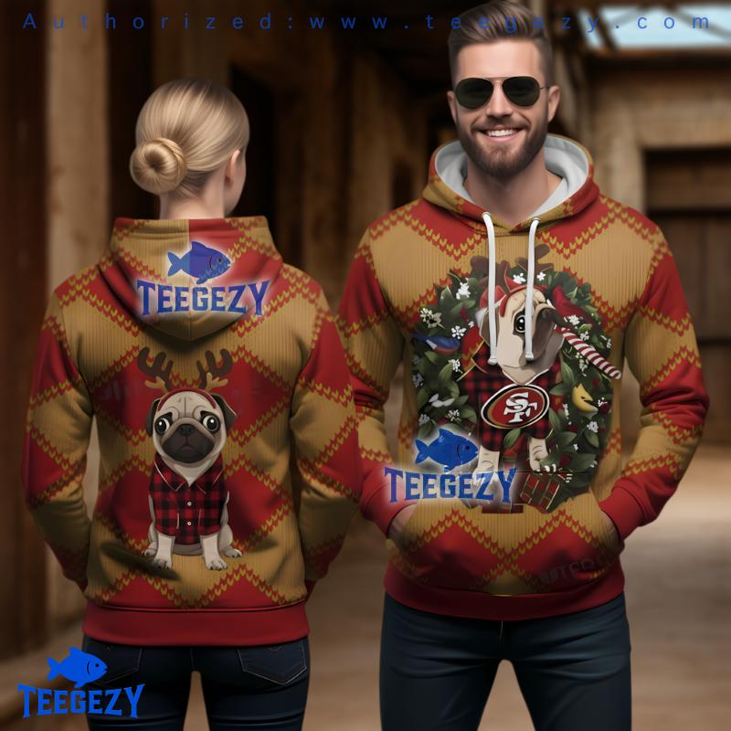 Add a unique flair to your holiday wardrobe or surprise a loved one with a must-have apparel piece. The San Francisco 49ers Pug Dog Christmas Wreath Ugly 3D Hoodie is not just a hoodie, it’s a statement. Don’t miss out on this festive fun—make this hoodie your go-to piece for holiday cheer and game day excitement!