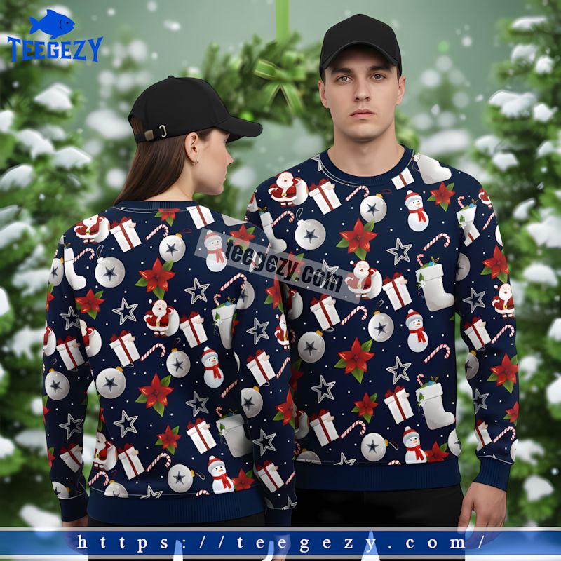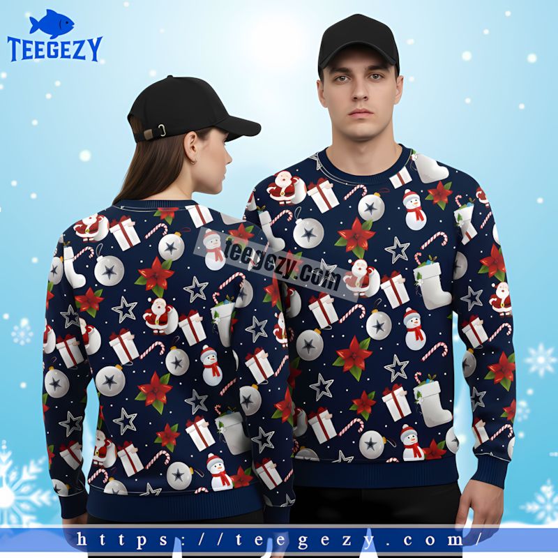 Embrace the holiday spirit with the Santa Claus Gift Dallas Cowboys Christmas Party Ugly Sweater Blue, a festive essential for any true fan. This unique design captures the joy of the season and showcases your love for the Cowboys in a memorable way. Your friends and family will surely be entertained and impressed by your one-of-a-kind ugly sweater.