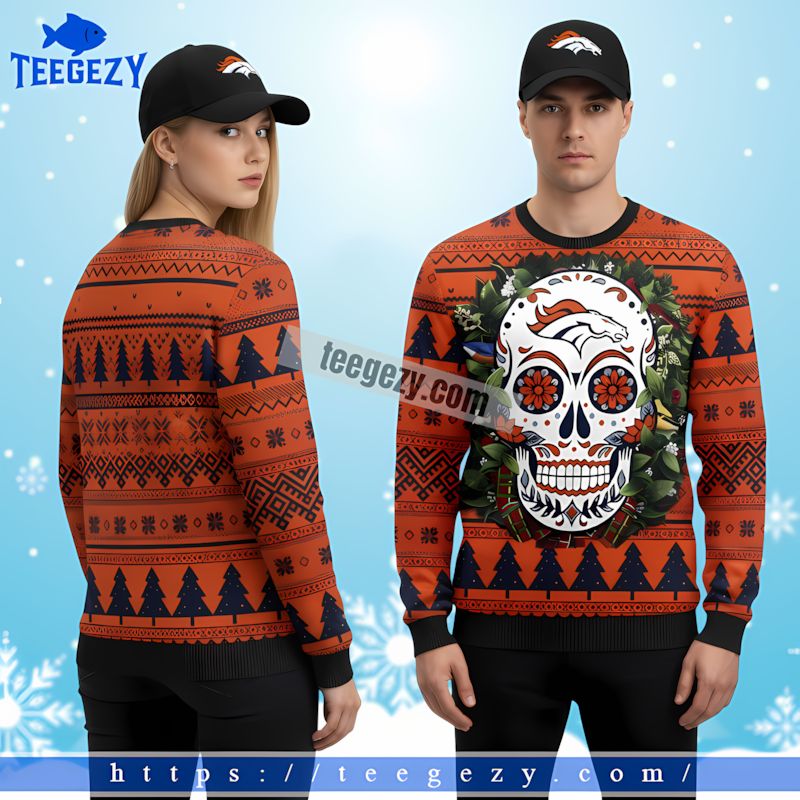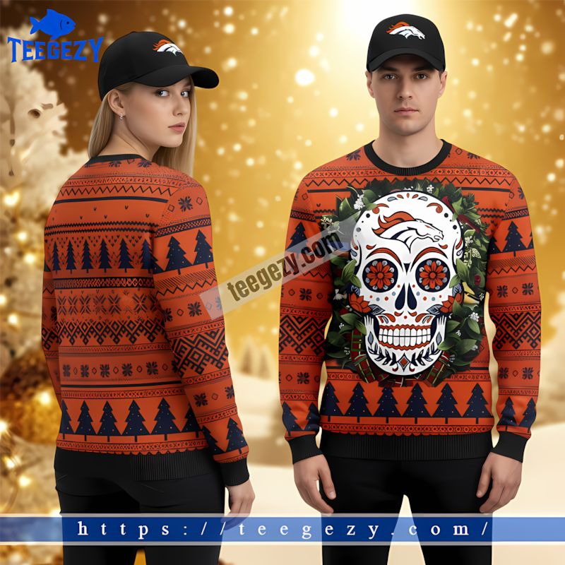 Product information "Skull Flower Denver Broncos Xmas Ugly Sweater Orange"