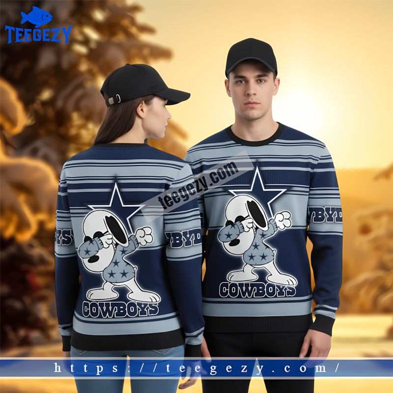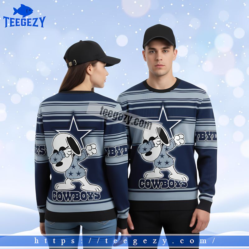 Product information "Snoopy Dabbing Dallas Cowboys Funny Christmas Ugly Sweater Blue"