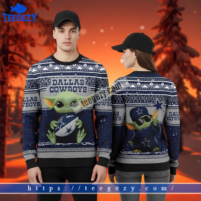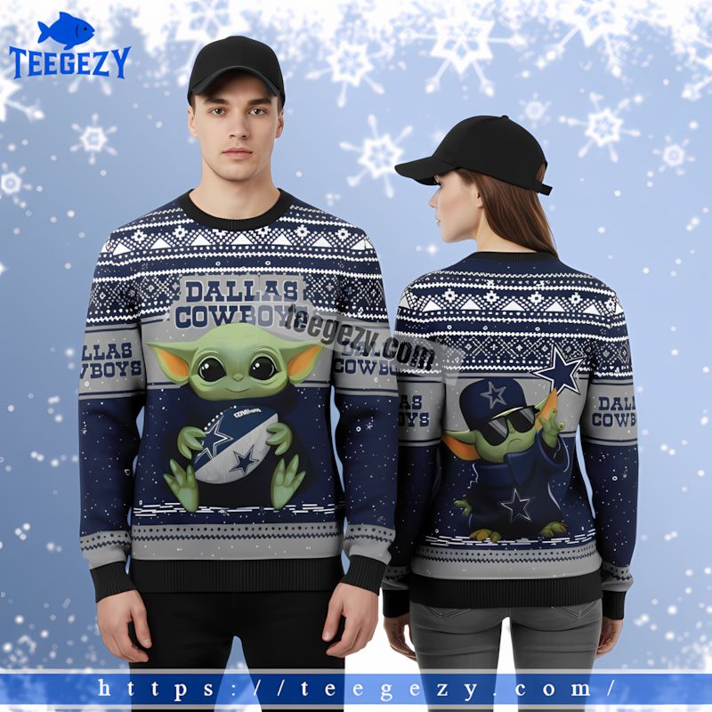 Get ready to celebrate the holidays with the Star Wars Dallas Cowboys Baby Yoda Funny Xmas Ugly Sweater Blue. This unique design combines the beloved Baby Yoda with the iconic Dallas Cowboys, making it a standout choice for fans who want to showcase their spirit in a fun way. Wearing this sweater is sure to spark conversations and bring smiles to those around you during the festive season.